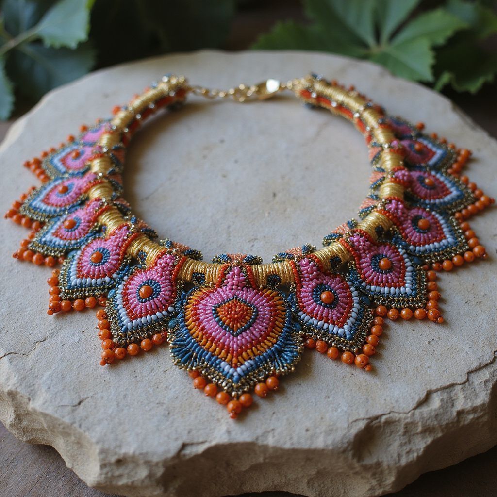 Plant-based dyes derived from local flora add color and symbolism to the finished pieces.